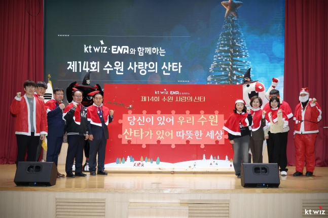 한편 올해로 11년째를 맞은 사랑의 산타 행사에는 김현수 수원 특례시 부시장, 이호식 KT 스포츠 대표이사, 오광훈 KT ENA 콘텐츠사업본부장, 나도현 KT 야구단 단장 등 행사 관계자 100여 명이 참석했다.