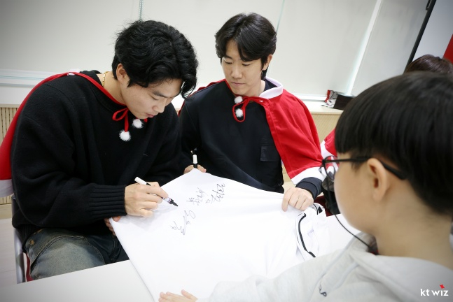 연고 지역 수원을 향한 KT 선수단의 진심은 여기서 그치지 않는다. 이날 개인 일정으로 아쉽게 불참한 고영표는 이미 한발 앞서 2일 KT 응원단과 함께 아주대 병원 소아병동을 방문했다.