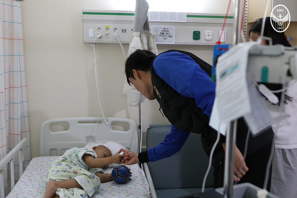 19일 인하대병원 관계자에 따르면 이명주가 인하대병원과 처음 인연을 맺은 건 지난달 20일 구단 행사였다. 당시 이명주는 황성민, 문지환, 박경섭 등 소속팀 선수들과 함께 인하대병원 소아병동을 찾아 구단 기념품과 인형 쿠션 등을 아이들에게 선물하는 행사에 참여했다. 두 딸을 둔 아빠이기도 한 그는 이날 행사에서도 가장 적극적으로 참여해 아이들과 시간을 보냈다.