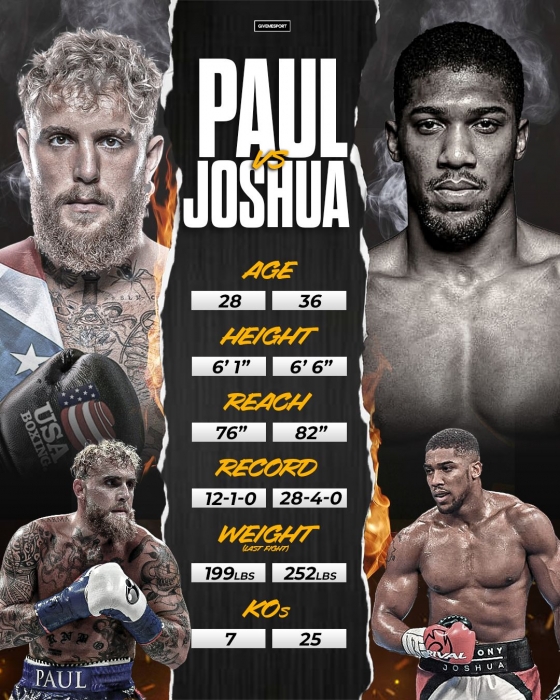 심지어 두 체급 세계 챔피언에 빛나는 나타샤 조나스는 "폴이 이 경기에서 쓰러지지 않는다면 복싱계에 안 좋은 영향을 미칠 것"이라며 "폴은 조슈아의 펀치를 견딜 수 없다. 조슈아가 그를 10초 안에 KO시키면서 복싱의 남다른 수준을 깨닫게 할 것"이라고 단언했다.