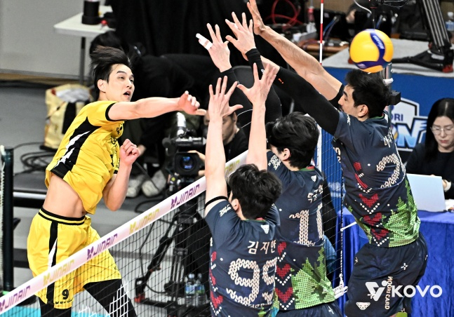 하지만 경기 막판 차영석의 연속 블로킹이 흐름을 바꿨다. 차영석이 김지한과 아라우조의 공격을 모두 막아내며 KB손해보험은 20점에 먼저 도달했다. 비예나의 백어택에 이어 차영석이 속공 득점에 성공하면서 리드를 이어갔고, 우리카드 알리의 서브가 네트가 걸리며 KB손해보험이 매치 포인트를 잡았다. 박상하가 황택의의 토스를 빠르게 밀어넣으면서 KB손해보험의 승리가 확정됐다.