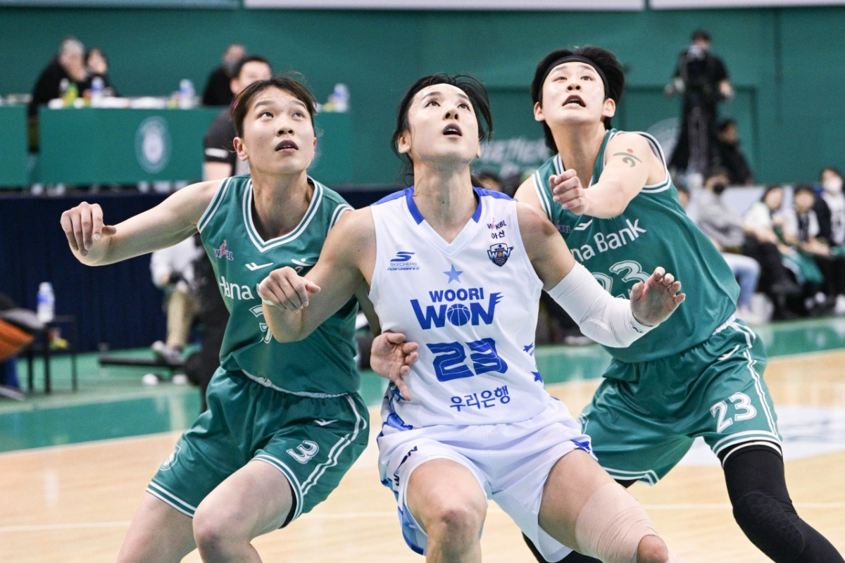 하나은행은 21일 오후 4시 부천실내체육관에서 열린 BNK 금융 2025~2026시즌 WKBL(여자프로농구) 정규리그 경기에서 우리은행을 61-53으로 꺾었다.