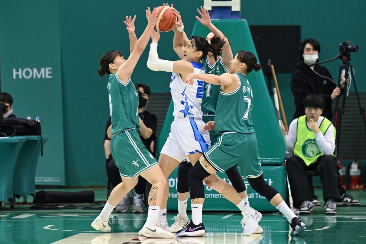 이날 결과로 단독 선두 하나은행은 8승 3패로 2위 그룹 KB스타즈, BNK썸(이상 6승 4패)을 두 게임 차로 따돌렸다.