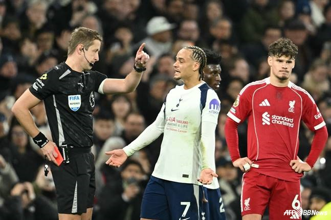 토트넘 홋스퍼 에이스 손흥민(33·현 로스앤젤레스FC)이 달았던 등번호 7번 무게감이 확 사라졌다. 손흥민의 후계자로 영입한 사비 시몬스(22·토트넘)이 최악 부진에 빠진 데 이어 황당한 퇴장으로 물의를 빚었다.