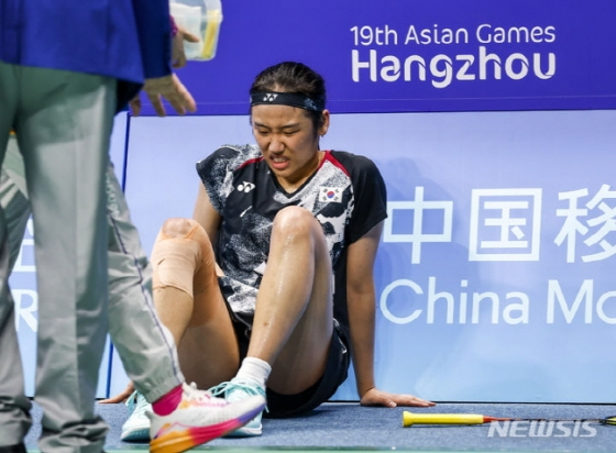 2년 전 그날이 떠올리게 만드는 장면이었다. 2023년 항저우 아시안게임 결승에서 '숙적' 천위페이(중국)를 만난 안세영은 앞서가던 1게임 막판 무릎을 부여잡았다. 테이핑을 잔뜩 두르고 나섰으나 결국 가장 중요한 길목에서 안세영의 발목을 잡았다.