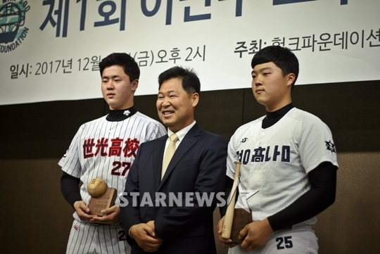 이만수 전 감독이자 현 헐크파운데이션 이사장은 22일 서울 강남구 도곡동 한국야구회관 빌딩에서 열린 제9회 이만수 포수상 및 홈런상 시상식에 참석했다.