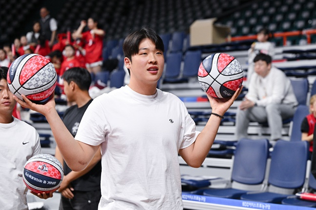 관중석에 앉아 경기를 지켜보던 이민석은 하프타임 자유투 이벤트를 위해 코트를 밟았다. 첫 공은 림을 외면했고, 다음 구도 들어가지 않았다. 영점을 다시 조정한 이민석은 세 번째 시도 만에 성공시켰다. 지난해 KCC 경기의 시투자로 나선 김태현은 한 번에 성공했다.
