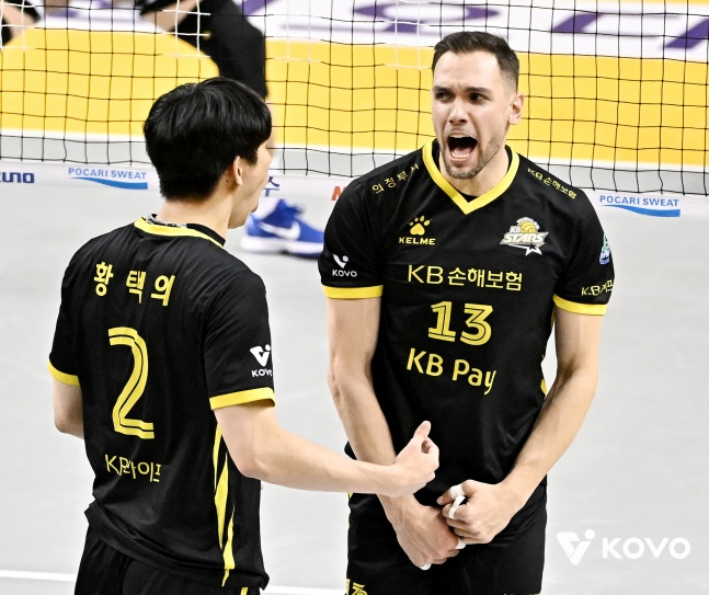 4세트에서는 임성진이 힘을 냈다. 임성진이 황택의가 올린 공을 구석구석 찔러넣으며 4연속 득점에 성공했다. 덕분에 24-19 리드를 잡은 KB손해보험은 박상하의 속공으로 귀중한 승점 3점을 챙겼다.