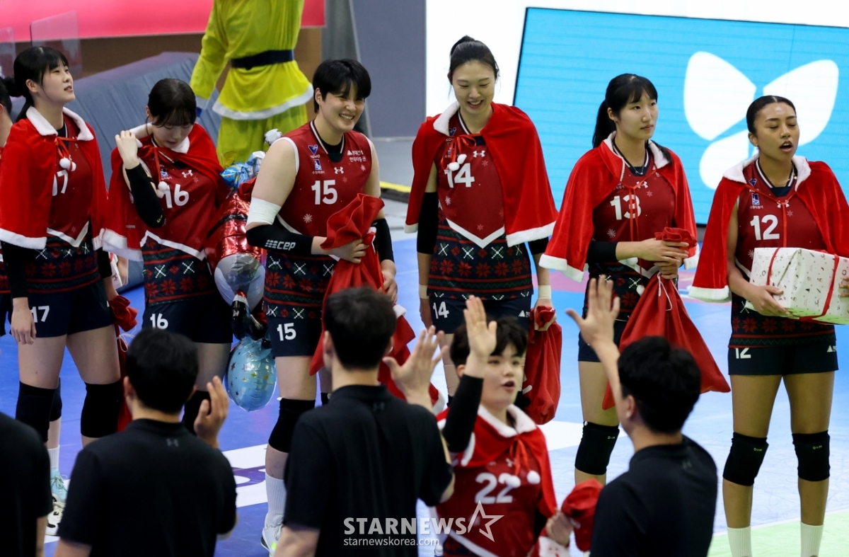 스포츠일반[한번에쓱]'크리스마스 선물 한보따리' 양효진과 현대건설 선수들발행 : 2025.12.25 ・ 16:58수원=강영조 선임기자현대건설 베테랑 양효진과 김희진 등 선수들이 크리스마스인 25일 수원체육관에서 열린 2025-2026 진에어 V리그 여자부 현대건설과 정관장 경기에 앞서 선물을 들고 입장하고 있다. 2025.12.25.<저작권자 © 스타뉴스, 무단전재 및 재배포 금지>양효진현대건설크리스마스선물선수김희진추천 기사강영조 선임기자기자홈좋아요 스포츠-일반의 인기 급상승 뉴스스포츠-일반의 최신 뉴스