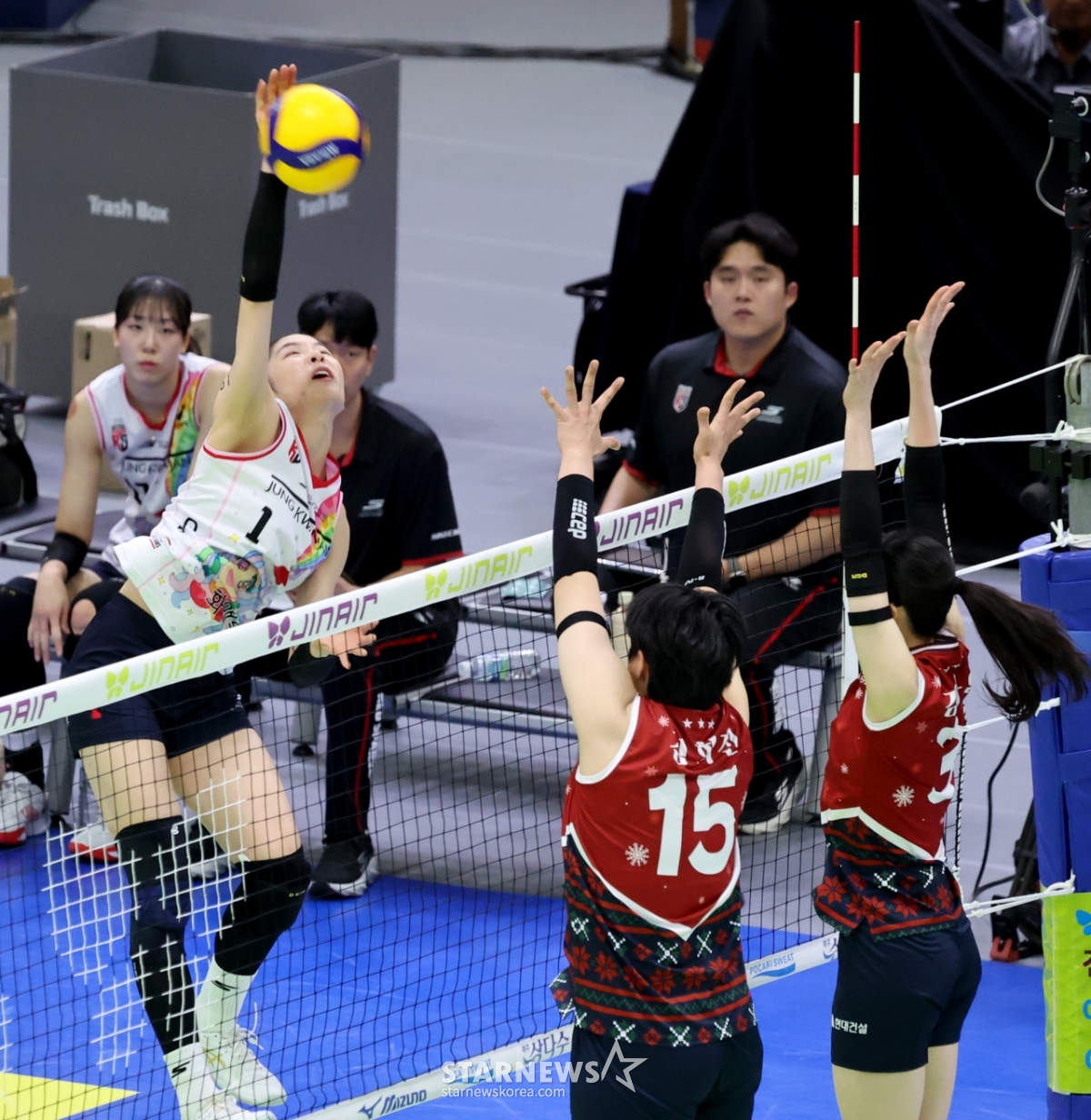 스포츠일반[포토]'강타 터트리는' 인쿠시발행 : 2025.12.25 ・ 17:42수원=강영조 선임기자정관장 인쿠시가 크리스마스인 25일 수원체육관에서 열린 2025-2026 진에어 V리그 여자부 현대건설과 정관장 경기에서 현대 이중블로킹에 강타를 시도하고 있다. 2025.12.25.<저작권자 © 스타뉴스, 무단전재 및 재배포 금지>쿠시현대강타수원진에어포토추천 기사강영조 선임기자기자홈좋아요 스포츠-일반의 인기 급상승 뉴스스포츠-일반의 최신 뉴스