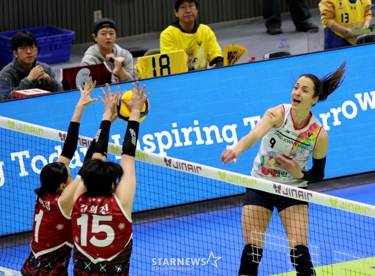 스포츠일반[포토]'앗! 걸렸다' 자네트발행 : 2025.12.25 ・ 18:13수원=강영조 선임기자정관장 자네트가 크리스마스인 25일 수원체육관에서 열린 2025-2026 진에어 V리그 여자부 현대건설과 정관장 경기에서 블로킹을 향해 강타를 터트리고 있다. 2025.12.25.<저작권자 © 스타뉴스, 무단전재 및 재배포 금지>자네트정관수원진에어포토크리스마스추천 기사강영조 선임기자기자홈좋아요 스포츠-일반의 인기 급상승 뉴스스포츠-일반의 최신 뉴스