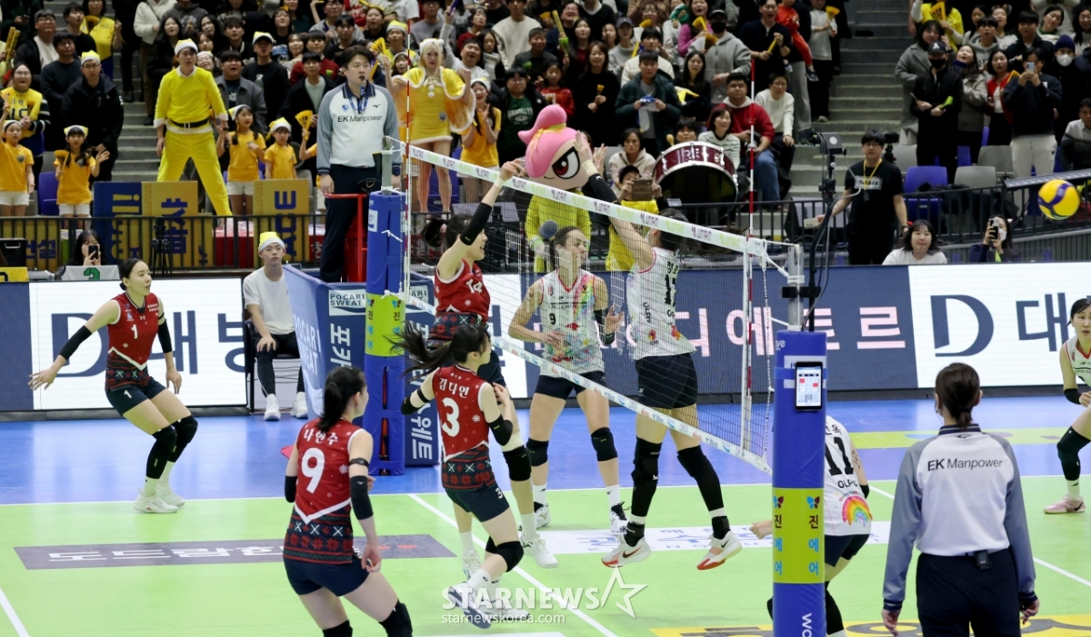 스포츠일반[한번에쓱]'역전승 마지막은 양효진이!'발행 : 2025.12.25 ・ 18:42수정 : 2025.12.25 ・ 18:44수원=강영조 선임기자현대건설 양효진이 크리스마스인 25일 수원체육관에서 열린 2025-2026 진에어 V리그 여자부 현대건설과 정관장 경기에서 5세트 마지막 득점에 성공하며 역전승으로 경기를 마무리를 하고 있다. 2025.12.25.<저작권자 © 스타뉴스, 무단전재 및 재배포 금지>양효진역전승마지막현대건설수원진에어추천 기사강영조 선임기자기자홈좋아요 스포츠-일반의 인기 급상승 뉴스스포츠-일반의 최신 뉴스