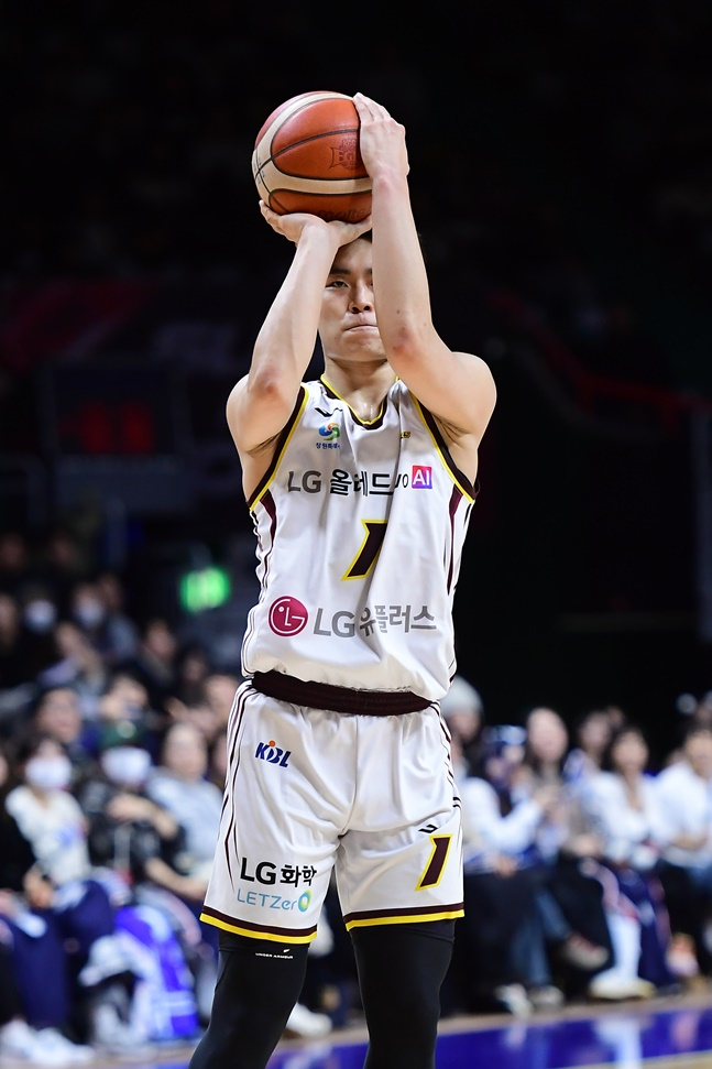 LG는 2023~24시즌 6라운드부터 KCC전 10연승을 달리고 있다. 그럼에도 유기상은 "(경기 전까지도) 9연승 중이라는 것도 몰랐다"며 "신경 쓰진 않았다. 올 시즌에는 멤버가 많이 바뀌었다. 정상전력도 아니어서 간절하게 뛰었다"고 밝혔다.