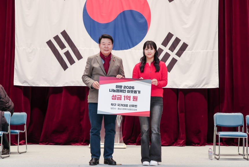 신유빈은 2025년에 이어 '희망 2026 나눔 캠페인 이웃돕기'에 1억 원을 기부했다.