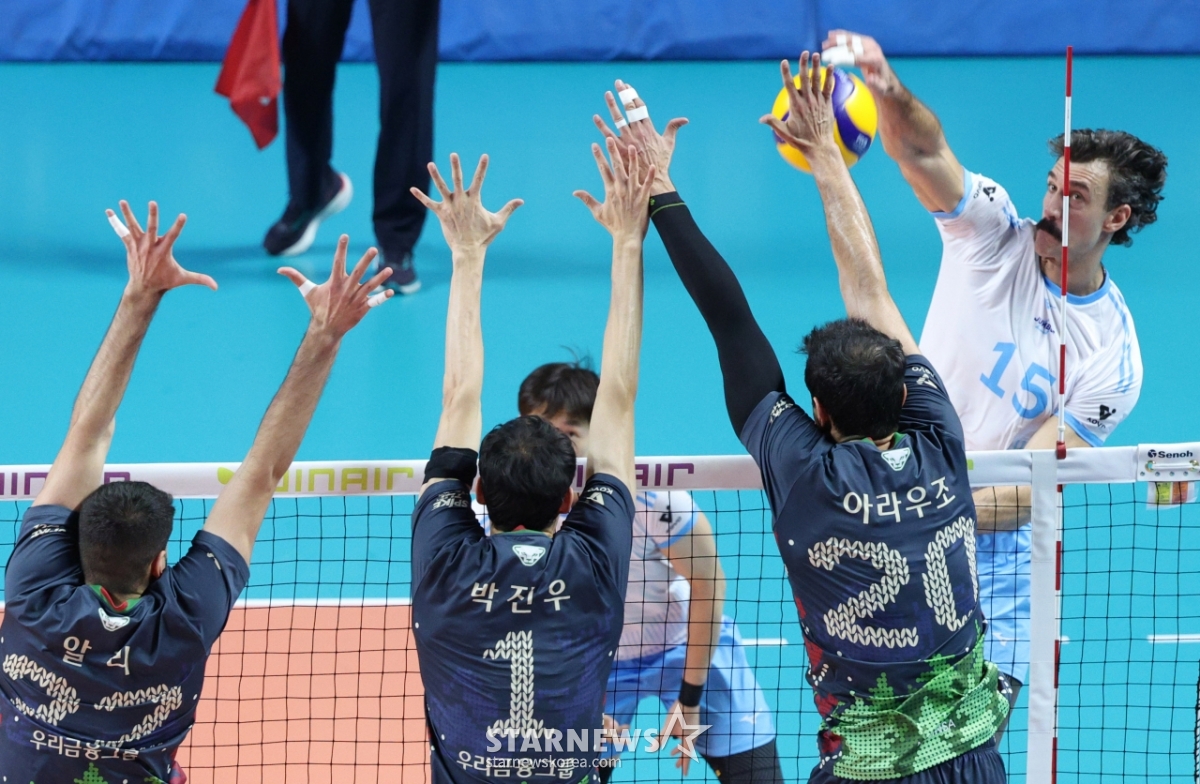스포츠일반[포토] 삼각편대 폭격하는 러셀발행 : 2025.12.28 ・ 15:17장충=김진경 대기자2025-2026 V-리그 남자부 우리카드 대 대한항공 경기가 28일 서울 장충체육관에서 열렸다.대한항공 러셀이 우리카드 알리, 박진우, 아라우조의 블로킹 위로 강스파이크를 날리고 있다.<저작권자 © 스타뉴스, 무단전재 및 재배포 금지>프로배구남자배구V리그대한항공우리카드김지한추천 기사김진경 대기자기자홈좋아요 스포츠-일반의 인기 급상승 뉴스스포츠-일반의 최신 뉴스