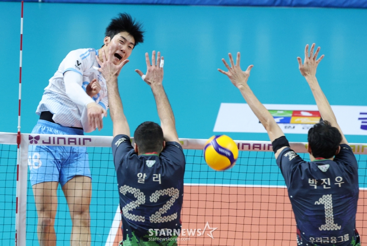 스포츠일반[포토] 임재영 '뚫었다'발행 : 2025.12.28 ・ 15:19장충=김진경 대기자2025-2026 V-리그 남자부 우리카드 대 대한항공 경기가 28일 서울 장충체육관에서 열렸다.대한항공 임재영이 우리카드 알리, 박진우 블로킹 위로 강스파이크를 날리고 있다.<저작권자 © 스타뉴스, 무단전재 및 재배포 금지>프로배구남자배구V리그대한항공우리카드김지한추천 기사김진경 대기자기자홈좋아요 스포츠-일반의 인기 급상승 뉴스스포츠-일반의 최신 뉴스