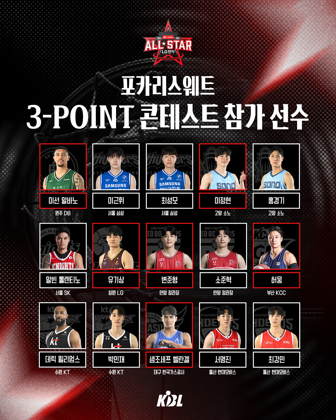 KBL이 2025~2026 LG전자 프로농구 올스타전 콘테스트 참가 명단을 확정했다.