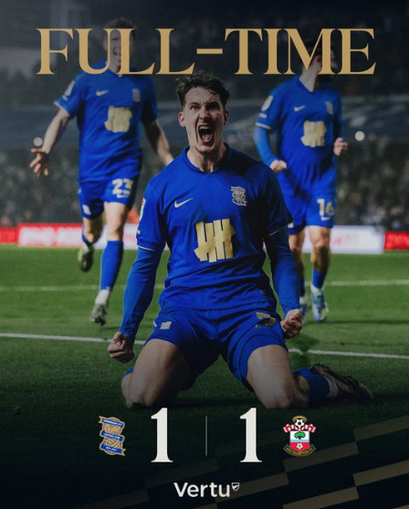 버밍엄은 30일(한국시간) 잉글랜드 버밍엄 세인트 앤드루스 파크에서 열린 사우스햄튼과의 '2025~2026시즌 잉글랜드풋볼리그(EFL) 챔피언십(2부리그)' 24라운드 홈 경기에서 1-1로 비겼다.