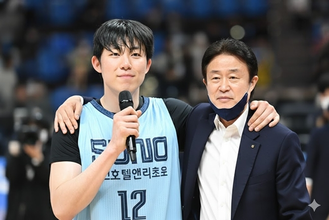 연세대학교 출신인 강지훈은 지난해 11월 열린 2025 신인 드래프트를 통해 소노에 입단했다. 1라운드 전체 4순위로 '농구인 2세'로 알려졌다. 바로 강을준 전 감독의 아들이다. 강을준 감독은 2022년까지 고양을 연고지로 한 고양 오리온을 이끌었고, 창원 LG 사령탑 시절 "우리는 영웅이 필요 없다, 승리했을 때 영웅이 나타난다"는 명언으로 농구팬들에게 '성리학자'라는 별명을 얻은 지도자다. 강 전 감독은 지난해 12월 29일 열린 소노와 서울 SK 나이츠와 홈 경기를 직접 찾은 모습을 연출했다. 장남인 강지훈을 보기 위해서였다.