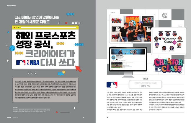 해외 프로스포츠의 크리에이터 활용 전략도 담았다. 팬메이드 콘텐츠를 적극 수용하는 MLB의 개방형 전략과 NBA의 플랫폼 기반 크리에이터 파트너십 등 해외 리그의 정책을 살펴보고, 글로벌 프로스포츠의 크리에이터 협업 변화 흐름과 인사이트를 제시한다.
