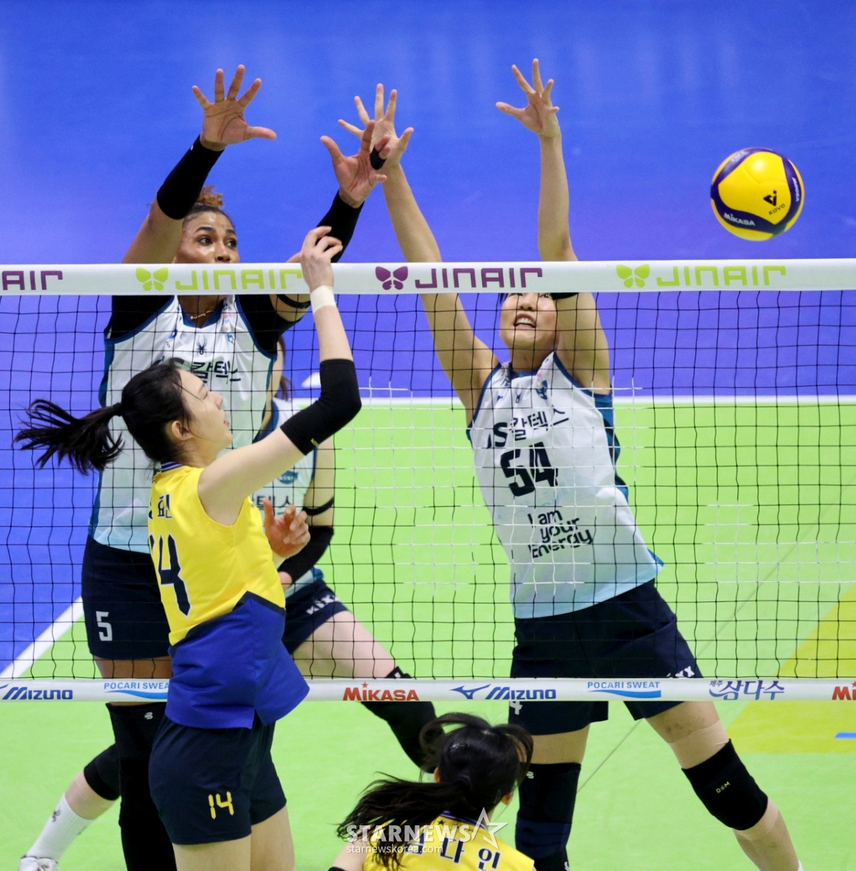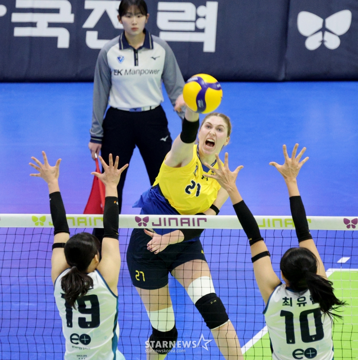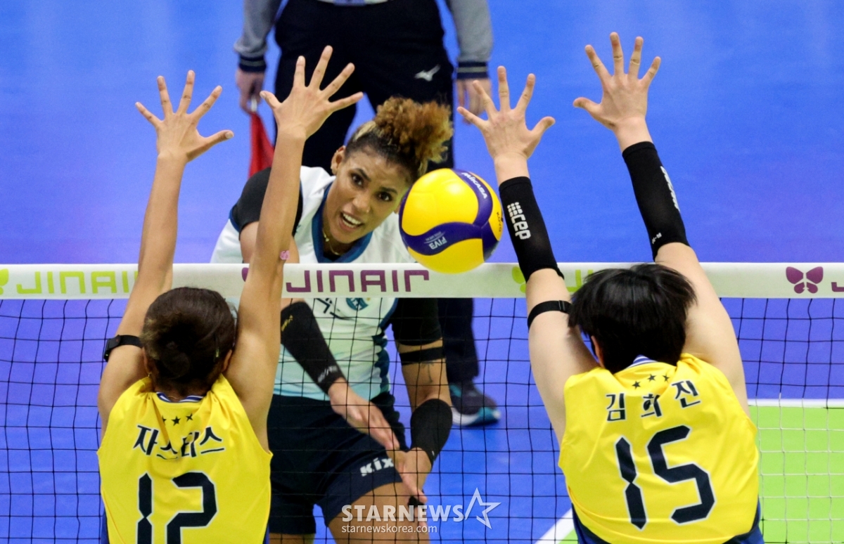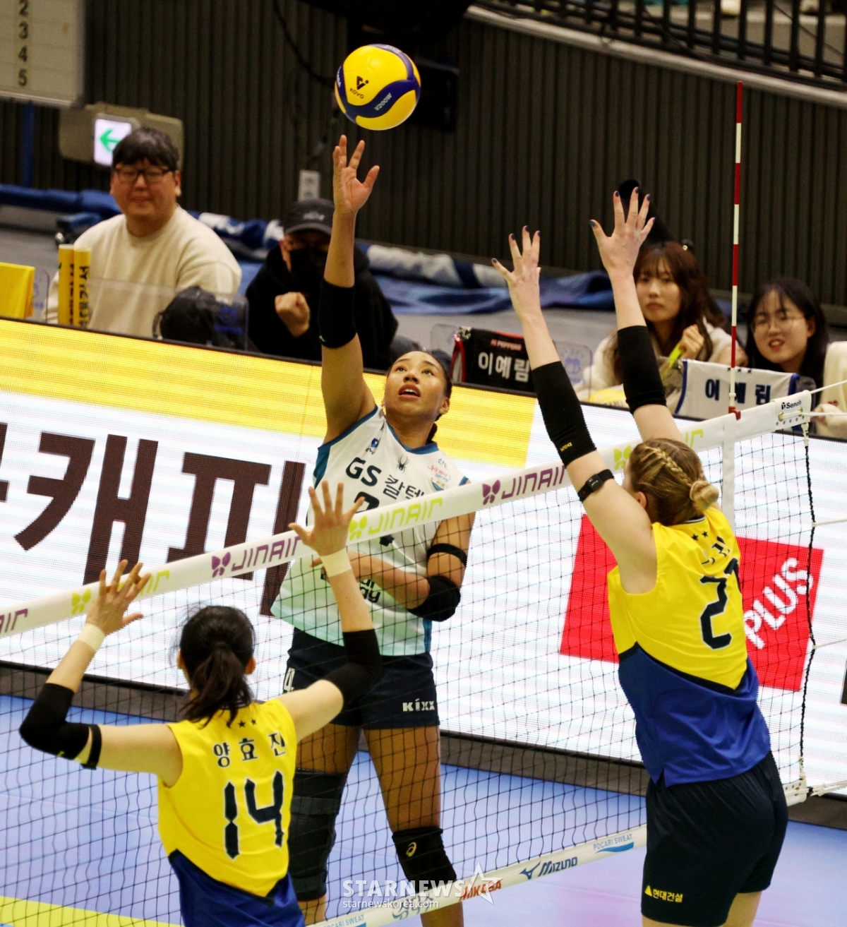 GS 실바가 3일 수원체육관에서 열린 2025-2026 진에어 V리그 여자부 현대건설과 GS칼텍스 경기에서 강타를 시도하고 있다. 2026.01.03.