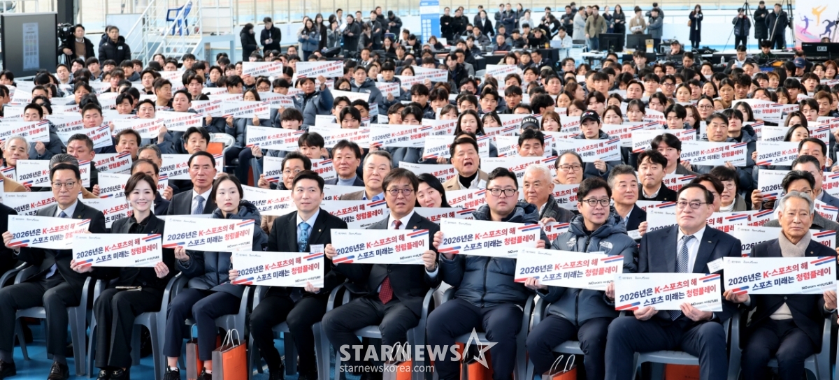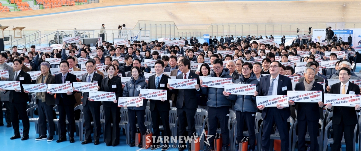 스포츠일반[포토]'2026 국가대표 훈련개시식'발행 : 2026.01.07 ・ 10:47조회수 :진천=강영조 선임기자유승민 대한체육회 회장과 최휘영 문화체육관광부 장관이 7일 진천국가대표훈련장에서 열린 2026 국가대표 훈련개시식에서 선수단과 함께 화이팅을 외치고 있다. 2026.01.03.<저작권자 © 스타뉴스, 무단전재 및 재배포 금지>브리핑추천 기사강영조 선임기자기자홈좋아요스포츠-일반의 인기 급상승 뉴스스포츠-일반의 최신 뉴스AD