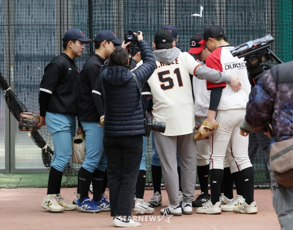 스포츠해외야구[포토] 이정후, 덕수고 휘문고와 스크럼발행 : 2026.01.07 ・ 13:45수정 : 2026.01.07 ・ 15:12이천=김진경 대기자미국 메이저리그 프로야구(MLB) 샌프란시스코 자이언츠가 7일 경기도 이천 LG 챔피언스파크에서 휘문고 및 덕수고 선수 60여 명을 초청해 야구 클리닉을 열었다.이정후가 선수들의 수비 훈련을 지도하고 있다. 이날 행사에는 래리 베어 회장, 버스터 포지 사장, 토니 바이텔로 감독, 이정후, 윌리 아다메스 등이 참석했다.<저작권자 © 스타뉴스, 무단전재 및 재배포 금지>브리핑미국 메이저리그 프로야구 샌프란시스코 자이언츠가 7일 경기도 이천 LG 챔피언스파크에서 휘문고 및 덕수고 선수 60여 명을 초청해 야구 클리닉을 개최했습니다. 이정후가 선수들의 수비 훈련을 지도했으며, 래리 베어 회장, 버스터 포지 사장, 토니 바이텔로 감독, 이정후, 윌리 아다메스 등이 참석했습니다.추천 기사김진경 대기자기자홈좋아요스포츠-해외야구의 인기 급상승 뉴스스포츠-해외야구의 최신 뉴스