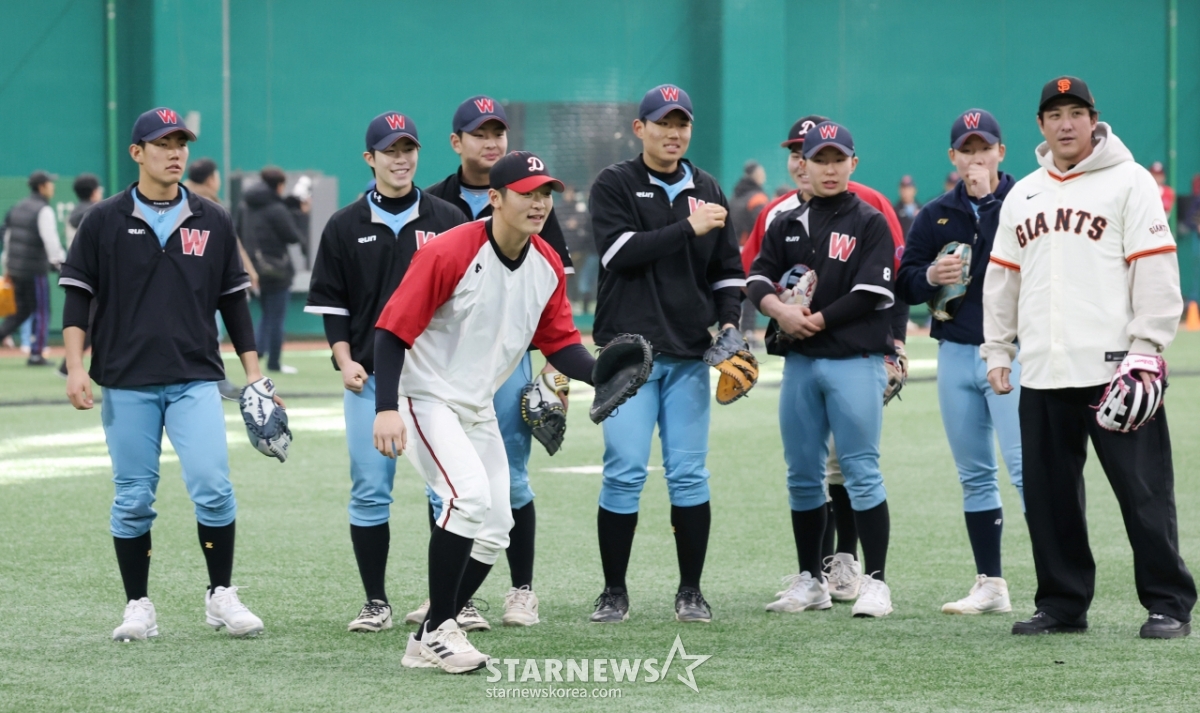 스포츠해외야구[포토] 설재민 'ML이 보고 있다'발행 : 2026.01.07 ・ 14:28이천=김진경 대기자미국 메이저리그 프로야구(MLB) 샌프란시스코 자이언츠가 7일 경기도 이천 LG 챔피언스파크에서 휘문고 및 덕수고 선수 60여 명을 초청해 야구 클리닉을 열었다.덕수고 설재민이 황재균의 지도하에 수비 훈련을 지도하고 있다. 이날 행사에는 래리 베어 회장, 버스터 포지 사장, 토니 비텔로 감독, 이정후, 윌리 아다메스, 황재균 등이 참석했다.<저작권자 © 스타뉴스, 무단전재 및 재배포 금지>브리핑미국 메이저리그 프로야구 샌프란시스코 자이언츠가 7일 경기도 이천 LG 챔피언스파크에서 휘문고 및 덕수고 선수 60여 명을 초청해 야구 클리닉을 개최했습니다. 행사에는 래리 베어 회장, 버스터 포지 사장, 토니 비텔로 감독, 이정후, 윌리 아다메스, 황재균 등이 참석했습니다.추천 기사김진경 대기자기자홈좋아요스포츠-해외야구의 인기 급상승 뉴스스포츠-해외야구의 최신 뉴스AD