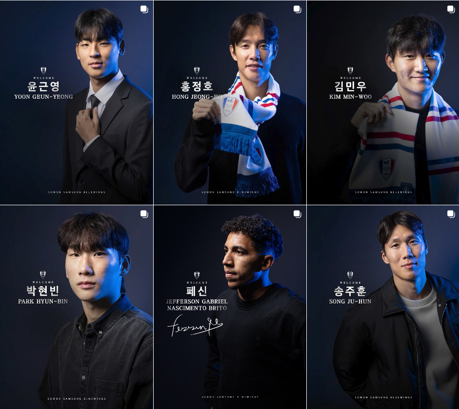 경남FC에서 4시즌 동안 111경기에 출전한 측면 수비수 이준재, 인천 유나이티드·부천FC 출신의 미드필더 박현빈, 대전하나시티즌·김포FC 출신 수비수 김민우도 '이정효호' 수원으로 향한다. 단국대 출신 센터백 윤근영도 흔치 않은 정장 오피셜로 수원행을 확정했다.