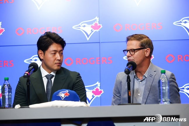 오카모토는 7일(한국시간) 캐나다 온타리오주 토론토 로저스센터에서 토론토 입단식에 참석했다. 포스팅을 통해 4년 6000만 달러(약 868억원) 계약을 맺은 오카모토는 이날 토론토 유니폼을 입고 팬들에게 인사를 건넸다.