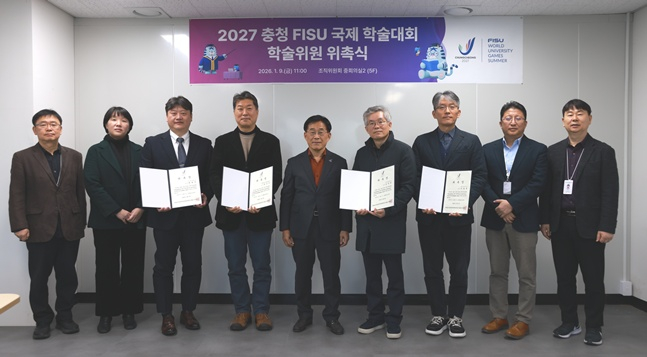 2027 충청 유니버시아드대회(U대회) 조직위원회(위원장 강창희)는 9일 조직위 중회의실에서 '2027 충청 FISU 국제 학술대회' 학술위원 위촉식을 열고 대회의 학문적 깊이를 더할 학술위원회 공식 출범을 선언했다고 밝혔다.