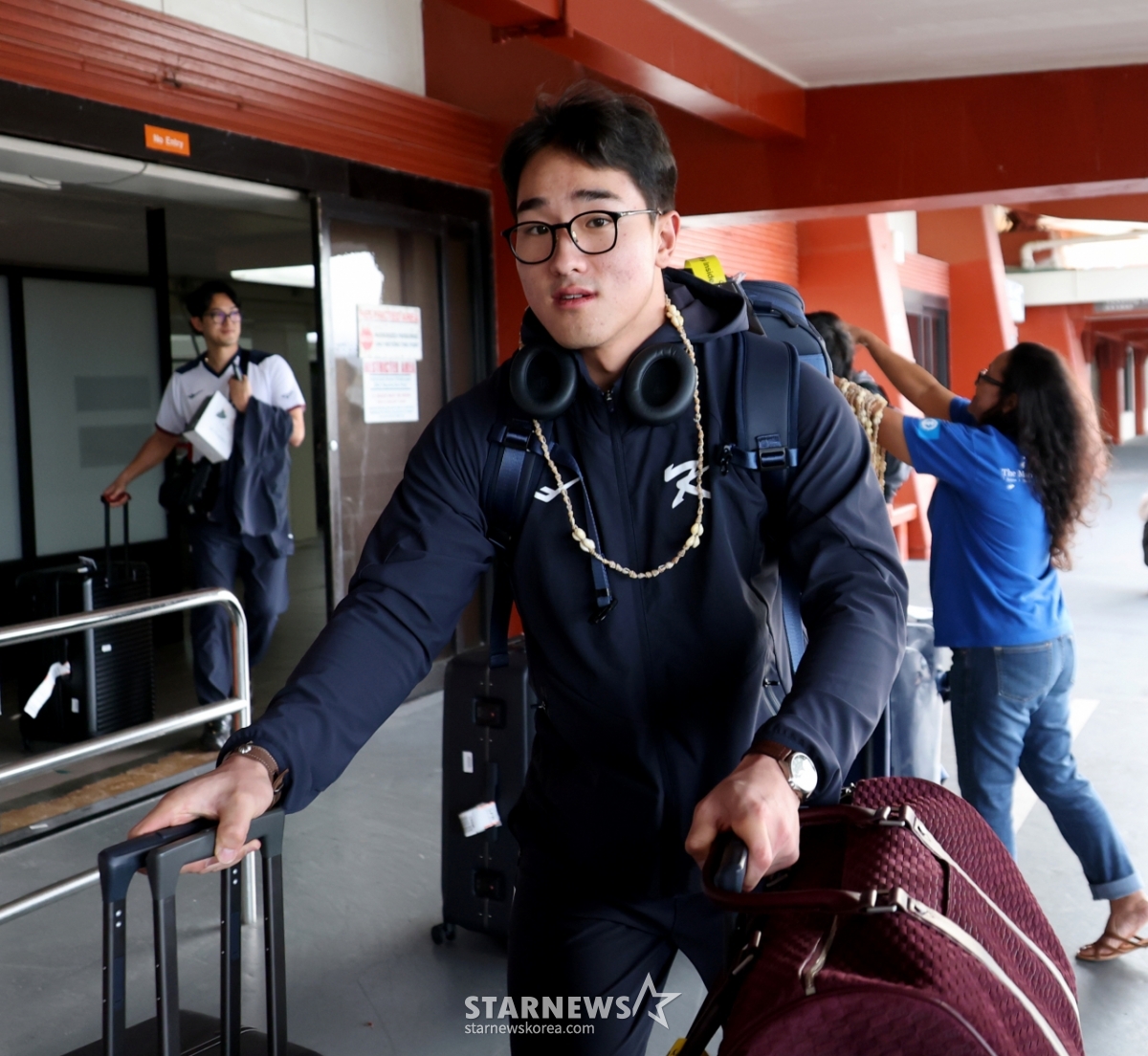 스포츠야구[포토]'뭘 이런걸~~' 웰컴목걸이 선불받는 안현민발행 : 2026.01.09 ・ 21:14조회수 :사이판=강영조 선임기자야구대표팀 안현민이 9일 인천공항을 통해 WBC 1차 전지훈련지인 사이판으로 입국한 가운데 웰컴목걸이를 선물받고 있다. 뒤는 김도영. 2026.01.09.<저작권자 © 스타뉴스, 무단전재 및 재배포 금지>브리핑추천 기사강영조 선임기자기자홈좋아요스포츠-야구의 인기 급상승 뉴스스포츠-야구의 최신 뉴스AD