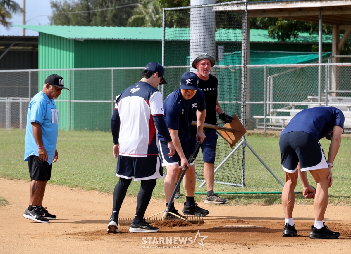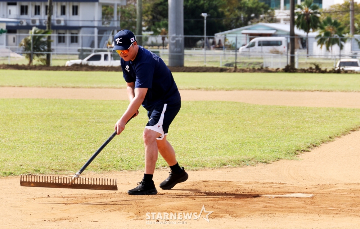 스포츠야구[포토]시범까지 보여주며 '그라운드 정리나선' 이진영코치발행 : 2026.01.10 ・ 20:01사이판=강영조 선임기자야구대표팀 이진영 코치가 10일 사이판 올레아이 스포츠 컴플렉스에서 열리는 전지훈련 첫날 그라운드 상황을 점검하다 상태가 심각하자 직접 정리작업을 하고 있다. 2026.01.10.<저작권자 © 스타뉴스, 무단전재 및 재배포 금지>이진영그라운드정리코치스포츠컴플렉스추천 기사강영조 선임기자기자홈좋아요 스포츠-야구의 인기 급상승 뉴스스포츠-야구의 최신 뉴스