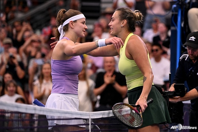 영국 매체 'BBC'는 10일(한국시간) "세계 1위 사발렌카가 카롤리나 무초바(체코)를 세트 스코어 2-0(6-3 6-4)으로 꺾고 3년 연속 브리즈번 인터내셔널 결승 무대를 밟았다"고 보도했다.