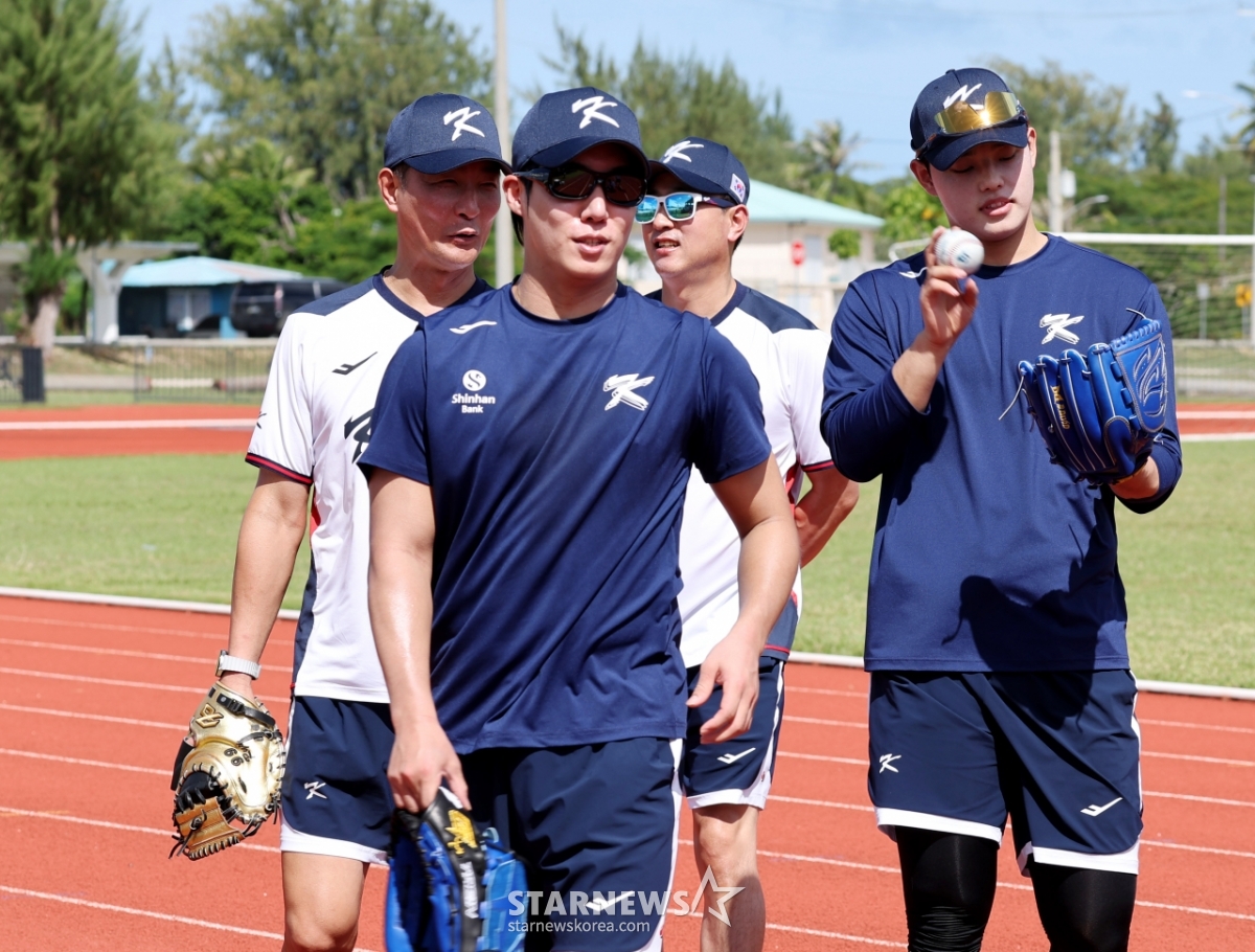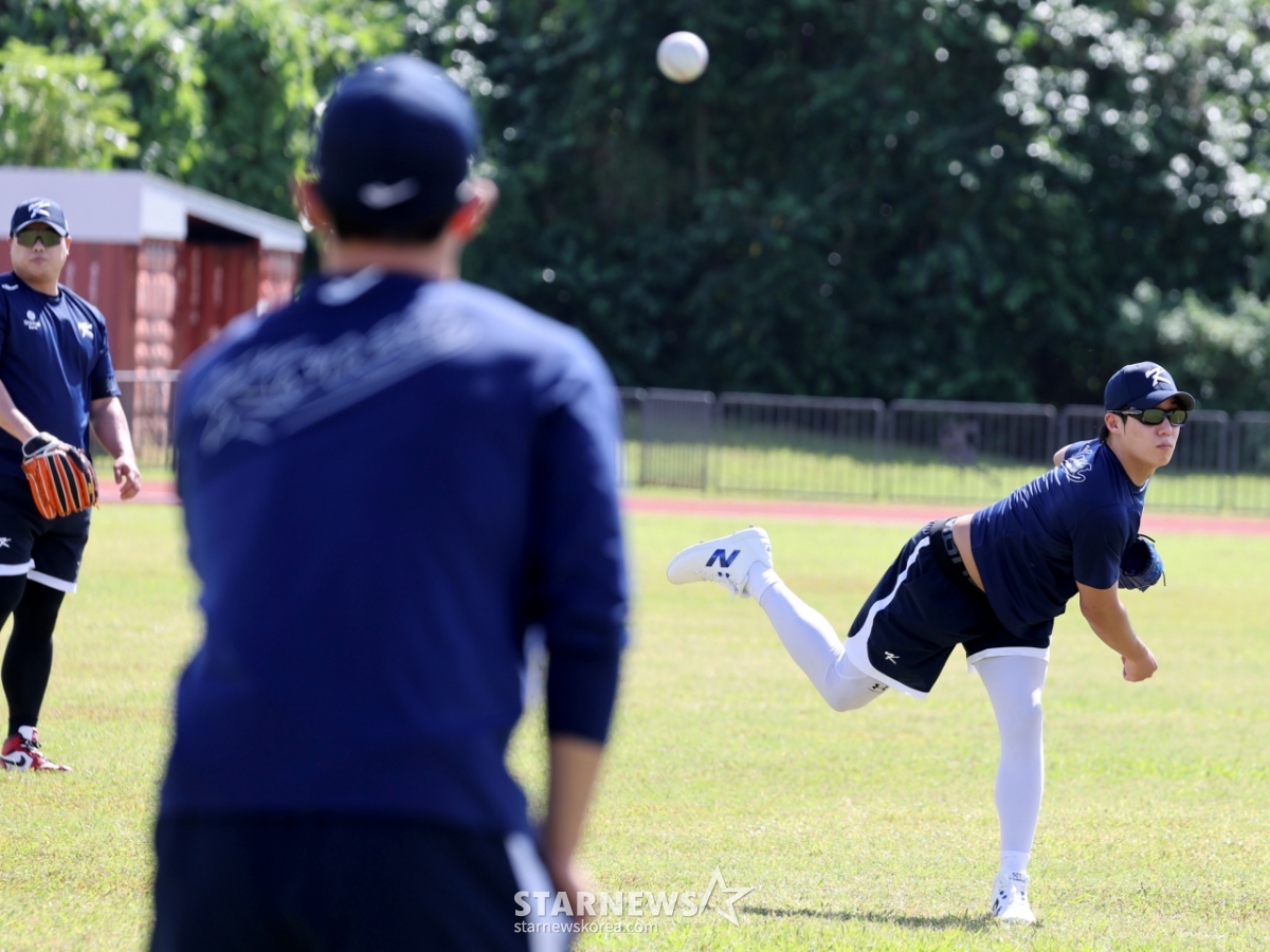 두 선수는 캐치볼 파트너로 합을 맞춘후 많은 대화를 나누며 우정을 다지고 있다. 2026.01.11.
