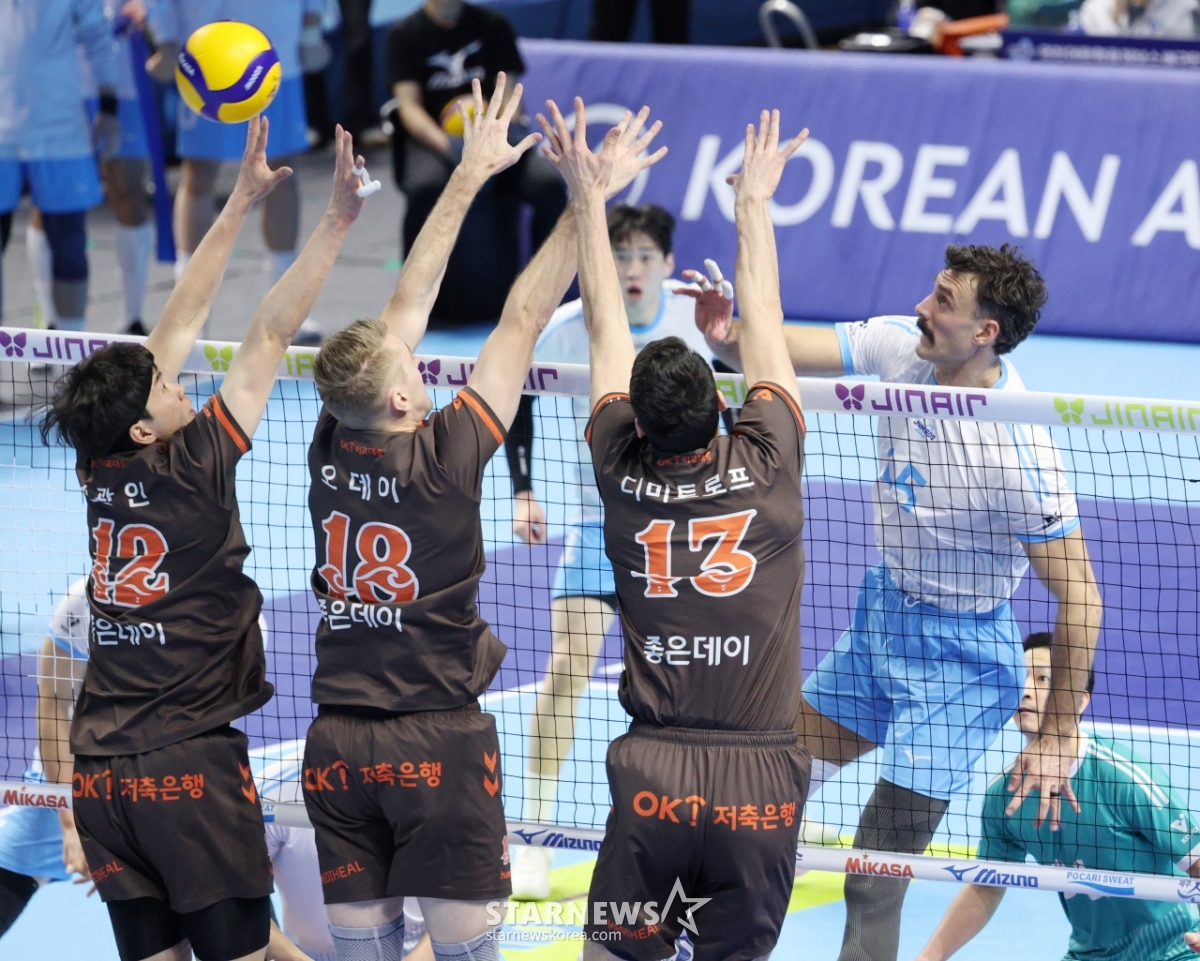 스포츠일반[포토] 러셀, 연타의 미학발행 : 2026.01.13 ・ 19:55인천=김진경 대기자2025-2026 V-리그 남자부 대한항공 대 OK저축은행 경기가 13일 인천 계양체육관에서 열렸다.대한항공 러셀이 OK저축은행 전광인, 오데이, 디미트로프 블로킹 위로 연타를 날리고 있다.<저작권자 © 스타뉴스, 무단전재 및 재배포 금지>배구프로배구v리그치어리더대한항공정한용추천 기사김진경 대기자기자홈좋아요 스포츠-일반의 인기 급상승 뉴스스포츠-일반의 최신 뉴스