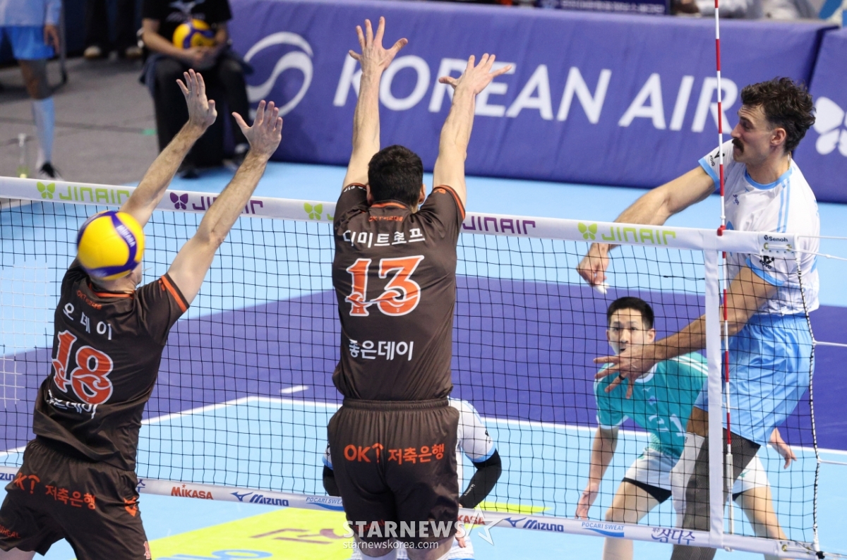 스포츠일반[포토] 러셀, 대각선 강타발행 : 2026.01.13 ・ 20:02인천=김진경 대기자2025-2026 V-리그 남자부 대한항공 대 OK저축은행 경기가 13일 인천 계양체육관에서 열렸다.대한항공 러셀이 OK저축은행 오데이와 디미트로프 블로킹 사이로 강스파이크를 날리고 있다.<저작권자 © 스타뉴스, 무단전재 및 재배포 금지>배구프로배구v리그치어리더대한항공정한용추천 기사김진경 대기자기자홈좋아요 스포츠-일반의 인기 급상승 뉴스스포츠-일반의 최신 뉴스