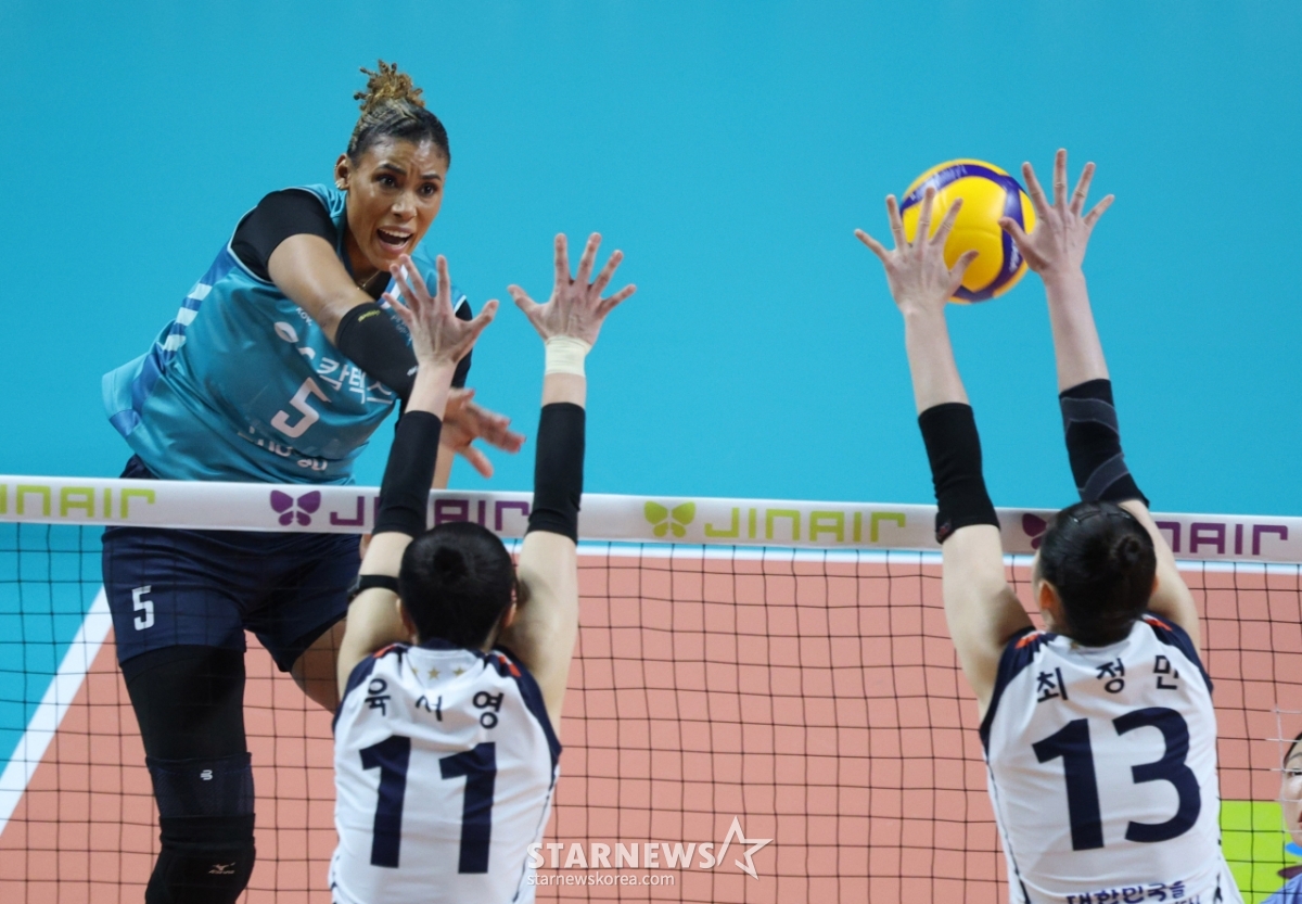 스포츠일반[포토] 실바 '최정민에 걸리다니'발행 : 2026.01.15 ・ 19:58장충=김진경 대기자2025-2026시즌 V리그 여자부 GS칼텍스 대 IBK기업은행 경기가 15일 서울 장충체육관에서 열렸다.GS칼텍스 실바가 IBK기업은행 육서영 최정민의 블로킹 위로 강스파이크를 날리고 있다.<저작권자 © 스타뉴스, 무단전재 및 재배포 금지>브리핑2025-2026시즌 V리그 여자부 GS칼텍스와 IBK기업은행의 경기가 15일 서울 장충체육관에서 열렸다. GS칼텍스 실바가 IBK기업은행 육서영 최정민의 블로킹 위로 강스파이크를 날렸다.추천 기사김진경 대기자기자홈좋아요스포츠-일반의 인기 급상승 뉴스스포츠-일반의 최신 뉴스