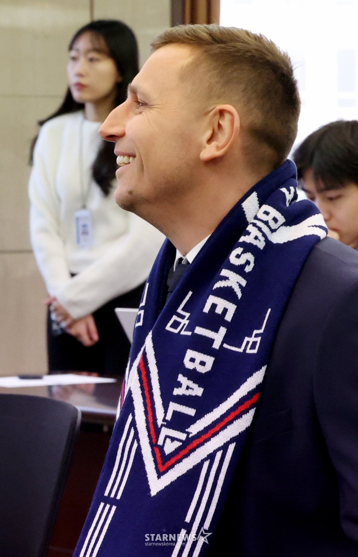 스포츠일반[포토] 니콜라이스 마줄스 '라트비아에서 왔어요'발행 : 2026.01.16 ・ 11:01광화문=김진경 대기자니콜라이스 마줄스 남자농구 국가대표 감독 취임 기자회견이 16일 서울 광화문 프레스센타에서 열렸다.마줄스 감독이 가족과 함께 행사 개시를 기다리고 있다.<저작권자 © 스타뉴스, 무단전재 및 재배포 금지>농구국대국가대표니콜라이스마줄스니콜라이스_마줄스_감독추천 기사김진경 대기자기자홈좋아요 스포츠-일반의 인기 급상승 뉴스스포츠-일반의 최신 뉴스