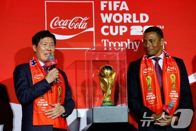 다만 트로피 공개 행사인데도 차범근 전 감독은 트로피를 직접 만질 수는 없었다. 월드컵은 우승 경험이 있는 선수와 국가 원수만이 만질 수 있다. 차범근 전 감독 역시 보관함 안에 보관된 트로피를 지켜만 봐야 했다.