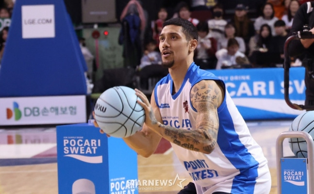 알바노는 18일 서울 송파구에 위치한 잠실실내체육관에서 열린 2025-2026 LG전자 프로농구 올스타전 1쿼터 종료 후 진행된 '포카리스웨트 3점슛 콘테스트 결선'에서 19점을 기록, 1위를 차지했다. 16점의 2위 수원 KT 소닉붐의 데릭 윌리엄스(35)를 3점 차이로 밀어냈다.