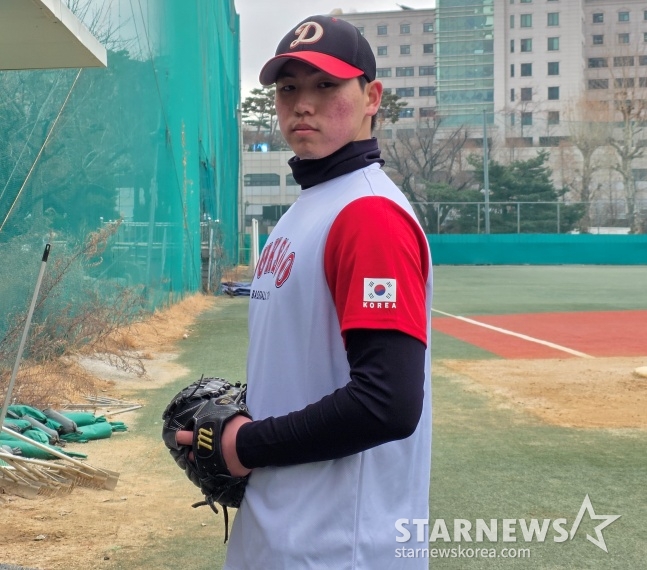 지난해 성적만 보면 다소 의외다. 김대승은 2학년인 지난해가 돼서야 처음 공식 경기 마운드에 섰다. 13경기에 나와 승패 없이 평균자책점 3.79, 19이닝 8사사구(6볼넷 2몸에 맞는 공) 14삼진, WHIP(이닝당 출루허용률) 1.21을 기록했다. 하지만 대한야구소프트볼협회(KBSA) 기준 키 190㎝ 몸무게 92㎏의 건장한 체격과 최고 시속 149㎞의 빠른 공이 매력적이라는 평가다. 직구 RPM(분당 회전수)은 2400을 넘는다.