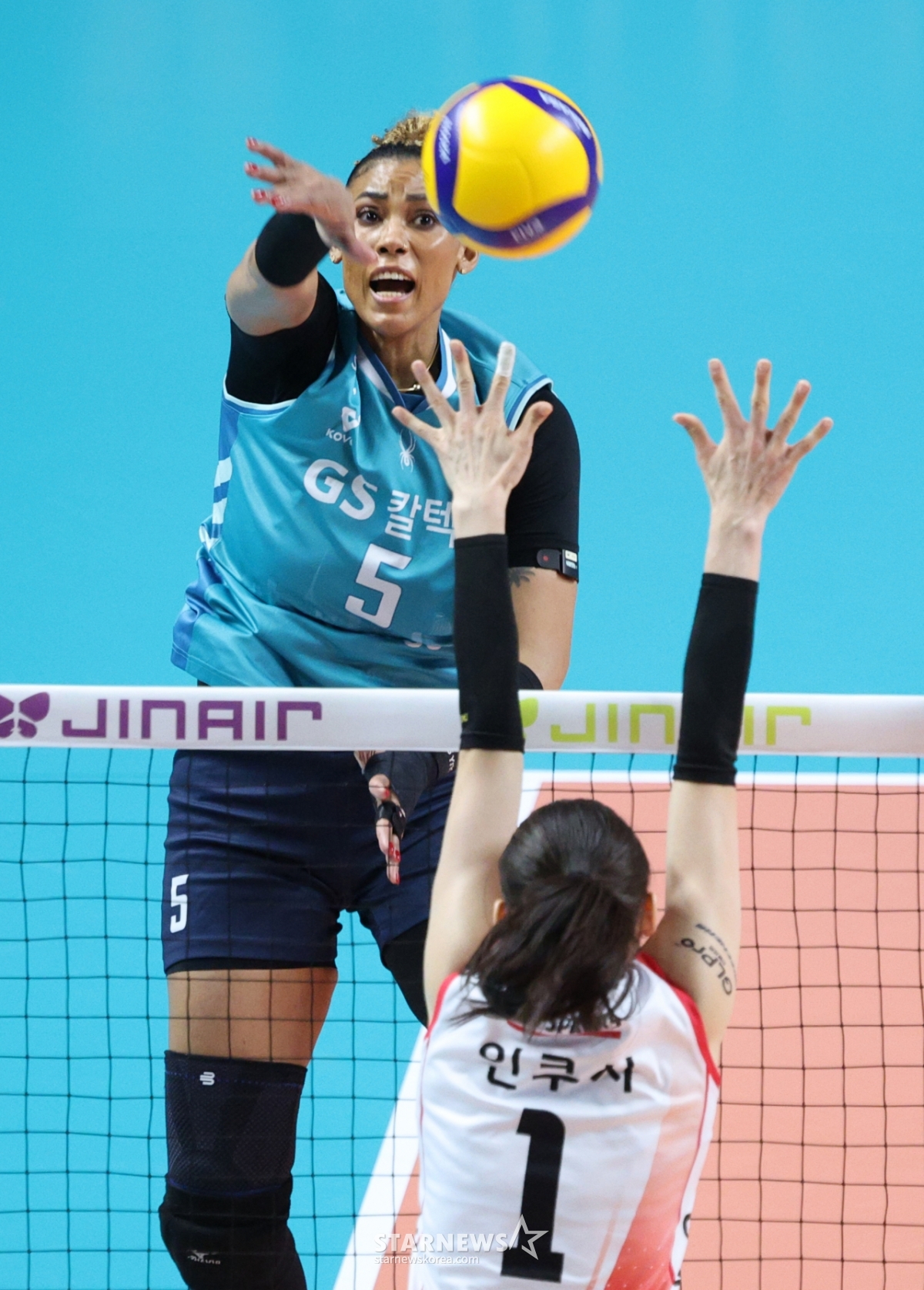 스포츠일반[포토] 실바 '인쿠시 혼자선 무리야'발행 : 2026.01.20 ・ 20:03장충=김진경 대기자2025-2026 V-리그 여자부 GS칼텍스 대 정관장 경기가 20일 서울 장충체육관에서 열렸다.GS칼텍스 실바가 정관장 인쿠시의 블로킹 위로 강스파이크를 날리고 있다.<저작권자 © 스타뉴스, 무단전재 및 재배포 금지>프로배구V리그실바최서현인쿠시쯔위추천 기사김진경 대기자기자홈좋아요 스포츠-일반의 인기 급상승 뉴스스포츠-일반의 최신 뉴스