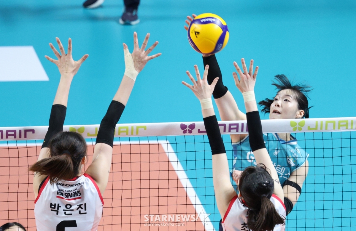 스포츠일반[포토] 유서연 '배구도 인생도 타이밍'발행 : 2026.01.20 ・ 20:04장충=김진경 대기자2025-2026 V-리그 여자부 GS칼텍스 대 정관장 경기가 20일 서울 장충체육관에서 열렸다.GS칼텍스 유서연이 정관장 박은진, 최서현의 블로킹 위로 강스파이크를 날리고 있다.<저작권자 © 스타뉴스, 무단전재 및 재배포 금지>프로배구V리그실바최서현인쿠시쯔위추천 기사김진경 대기자기자홈좋아요 스포츠-일반의 인기 급상승 뉴스스포츠-일반의 최신 뉴스
