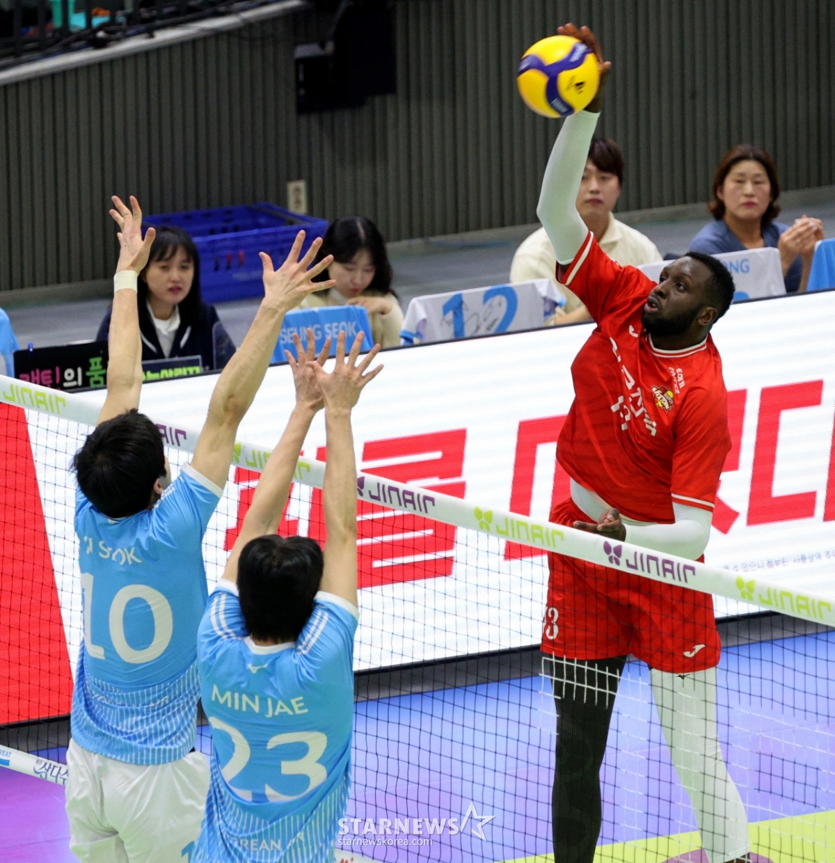 스포츠일반[포토]'터치아웃이지!'베논발행 : 2026.01.20 ・ 20:15수원=강영조 선임기자한전 베논이 20일 수원체육관에서 열린 2025-2026 진에어 V리그 한국전력과 대한항공의 경기에서 대한항공 이중블로킹에 강타를 터트고 있다. 202601.20.<저작권자 © 스타뉴스, 무단전재 및 재배포 금지>대한항공한전수원진에어한국전력포토추천 기사강영조 선임기자기자홈좋아요 스포츠-일반의 인기 급상승 뉴스스포츠-일반의 최신 뉴스