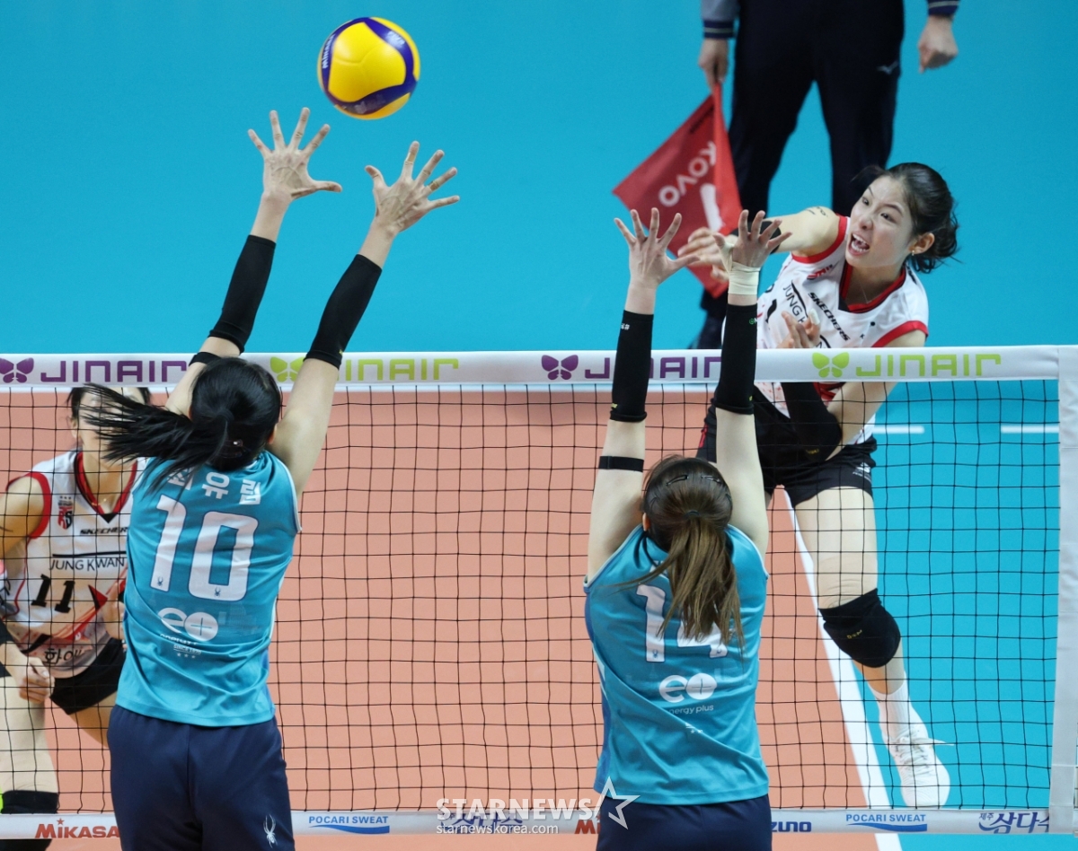 스포츠일반[포토] 인쿠시 '제대로 날았다'발행 : 2026.01.20 ・ 20:25장충=김진경 대기자2025-2026 V-리그 여자부 GS칼텍스 대 정관장 경기가 20일 서울 장충체육관에서 열렸다.정관장 인쿠시가 GS칼텍스 최유림, 김지원의 블로킹 위로 강스파이크를 날리고 있다.<저작권자 © 스타뉴스, 무단전재 및 재배포 금지>브리핑2025-2026 V-리그 여자부 GS칼텍스 대 정관장 경기가 20일 서울 장충체육관에서 열렸다.추천 기사김진경 대기자기자홈좋아요스포츠-일반의 인기 급상승 뉴스스포츠-일반의 최신 뉴스