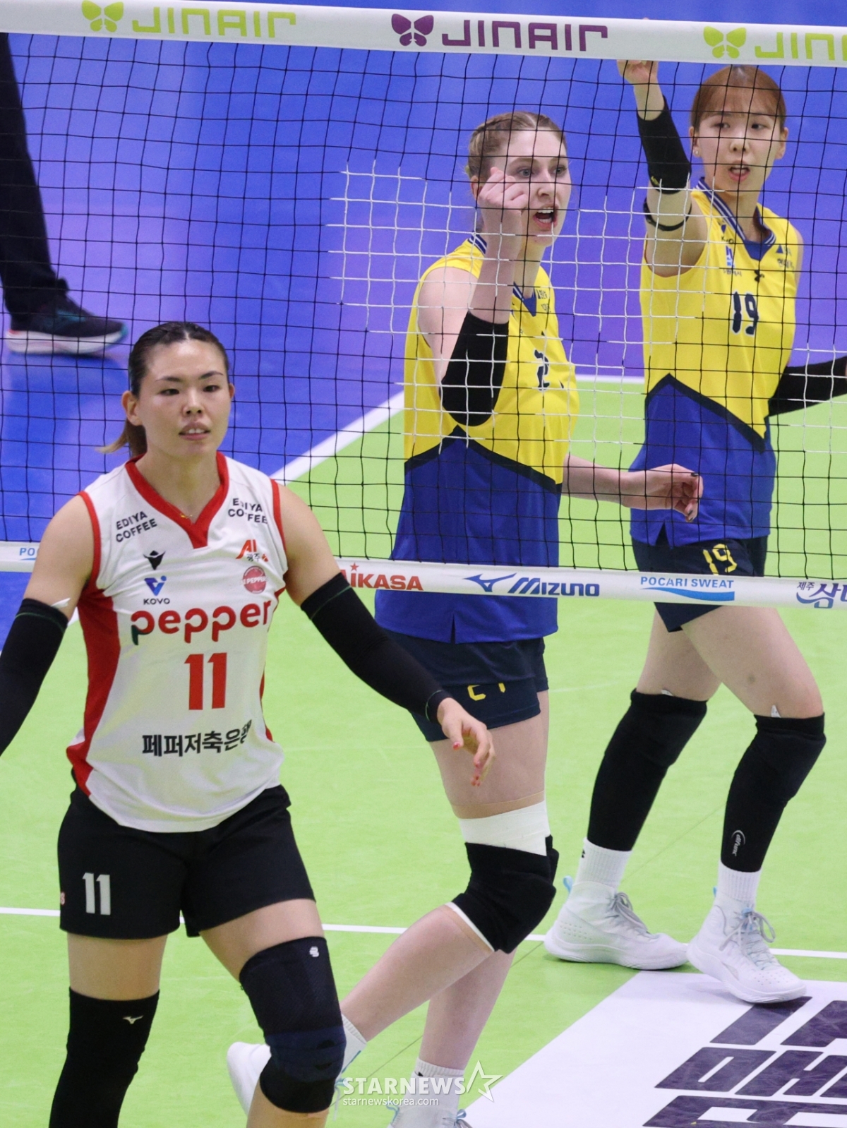 스포츠일반[포토] 카리 '시마무라 잡았다'발행 : 2026.01.21 ・ 19:41수원=김진경 대기자2025-2026 V-리그 여자부 현대건설 대 페퍼저축은행 경기가 21일 경기도 수원체육관에서 열렸다.현대건설 카리가 페퍼저축은행 시마무라의 블로킹 위로 강스파이크를 날린 후 환호하고 있다.<저작권자 © 스타뉴스, 무단전재 및 재배포 금지>배구V리그현대건설페퍼저축은행양효진블로퀸추천 기사김진경 대기자기자홈좋아요 스포츠-일반의 인기 급상승 뉴스스포츠-일반의 최신 뉴스