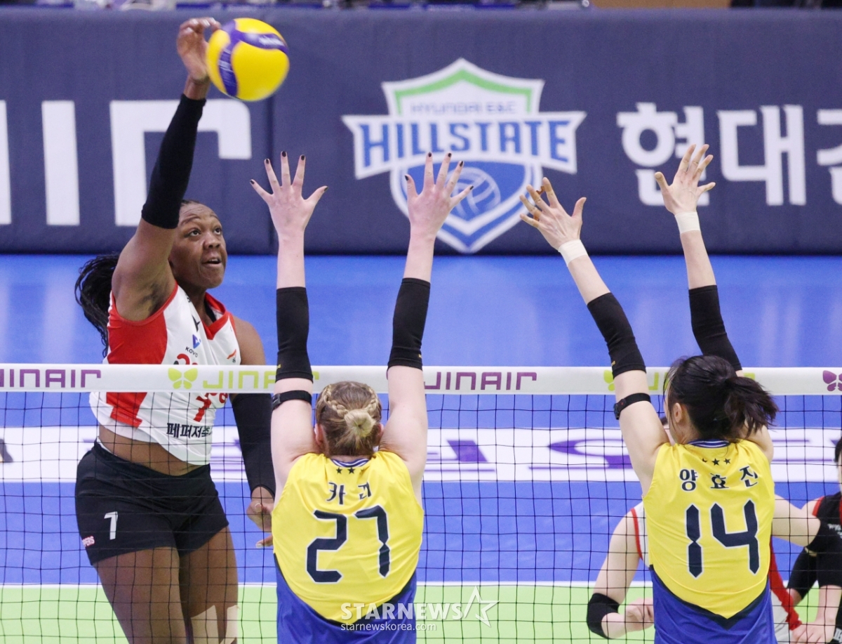 스포츠일반[포토] 조이 '카리, 양효진 나란히 격파'발행 : 2026.01.21 ・ 20:20수원=김진경 대기자2025-2026 V-리그 여자부 현대건설 대 페퍼저축은행 경기가 21일 경기도 수원체육관에서 열렸다.페퍼저축은행 조이가 현대건설 카리, 양효진 블로킹 위로 강스파이크를 날리고 있다.<저작권자 © 스타뉴스, 무단전재 및 재배포 금지>브리핑2025-2026 V-리그 여자부 현대건설과 페퍼저축은행의 경기가 21일 경기도 수원체육관에서 열렸다.추천 기사김진경 대기자기자홈좋아요스포츠-일반의 인기 급상승 뉴스스포츠-일반의 최신 뉴스