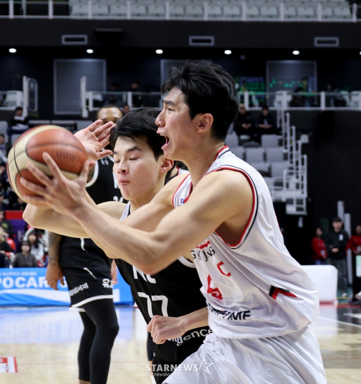 스포츠일반[포토]'성욱이가 날 잡을 수 있겠어?' 박지훈발행 : 2026.01.21 ・ 21:36수원=강영조 선임기자다른 언어로 기사를 읽어보세요정관장 박지훈이 21일 수원kt소닉붐아레나에서 열린 2025-2026 프로농구 KT와 정관장 경기에서 강성욱을 따돌리고 있다.202601.21.<저작권자 © 스타뉴스, 무단전재 및 재배포 금지>박지훈정관수원소닉붐아레나강성욱추천 기사강영조 선임기자기자홈좋아요스포츠-일반의 인기 급상승 뉴스스포츠-일반의 최신 뉴스