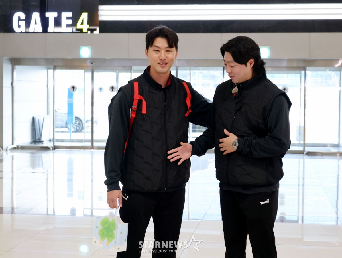 스포츠야구[한번에쓱]'불펜 방어율 1위., 함께 하자 범수야!' 홍건희발행 : 2026.01.23 ・ 17:12김포공항=강영조 선임기자친정으로 돌아온 홍건희와 한화에서 기아로 FA 이적한 김범수가 23일 김포공항을 통해 일본으로 출국하고 있다. 출국전 기자회견과 포토타임을 갖는 홍건희. 202601.23.<저작권자 © 스타뉴스, 무단전재 및 재배포 금지>브리핑홍건희와 김범수가 23일 김포공항을 통해 일본으로 출국했습니다.추천 기사강영조 선임기자기자홈좋아요스포츠-야구의 인기 급상승 뉴스스포츠-야구의 최신 뉴스